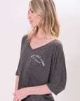 SLOUCHY V-TEE, FEATURING A VERSATILE, FLEXIBLE FIT THAT CAN BE STYLED MANY WAYS AND MANTRA. (ONE SIZE.)